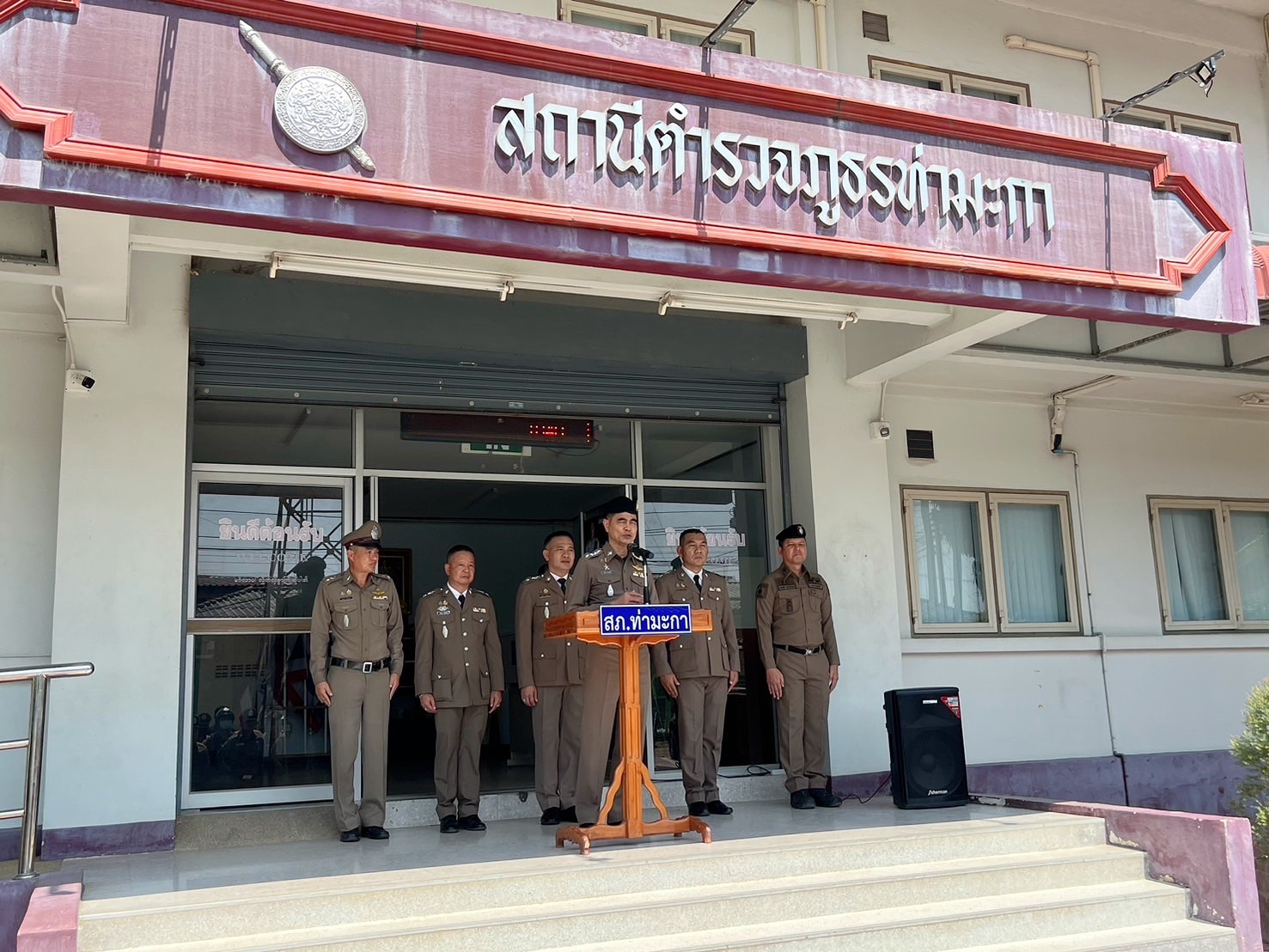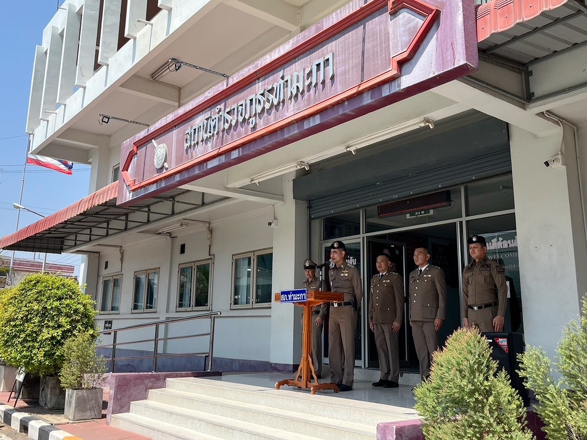 เมื่อวันที่ 5 มีนาคม พ.ศ.2568 เวลา 10.30 น. ข้าราชการตำรวจ สภ.ท่ามะกา ตั้งแถวต้อนรับ พ.ต.อ.ธานี สงวนจีน ซึ่งเดินทางมาตำรงตำแหน่ง ผกก.สภ.ท่ามะกา โดย พ.ต.อ.ธานี สงวนจีน ได้ชี้แจงแนวการการทำงานการปฏิบัติหน้าที่ให้บรรลุเป้าหมาย อีกทั้งได้กำชับข้าราชการตำรวจให้ปฏิบัติตามกฎหมายอย่างเคร่งครัดไม่ให้มีการเรียกรับ ทรัพย์สินหรือ ประโยชน์อื่นใด เพื่อป้องกันการทุจริตภายในหน่วยงาน