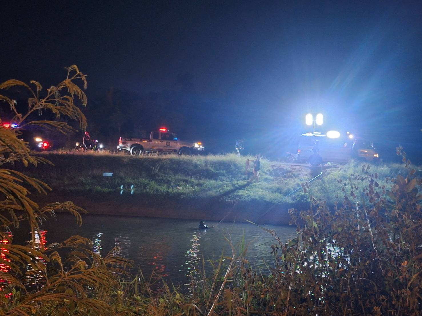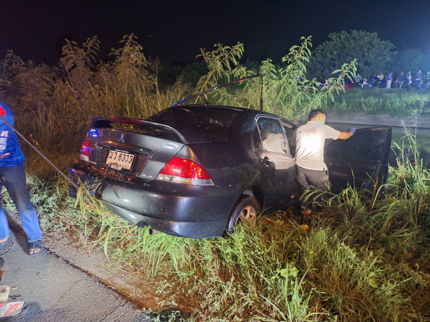 พนักงานสอบสวนเวร ตรวจสถานที่เกิดเหตุ เหตุ ว.40 รถยนต์ตกไปภายในคลอง