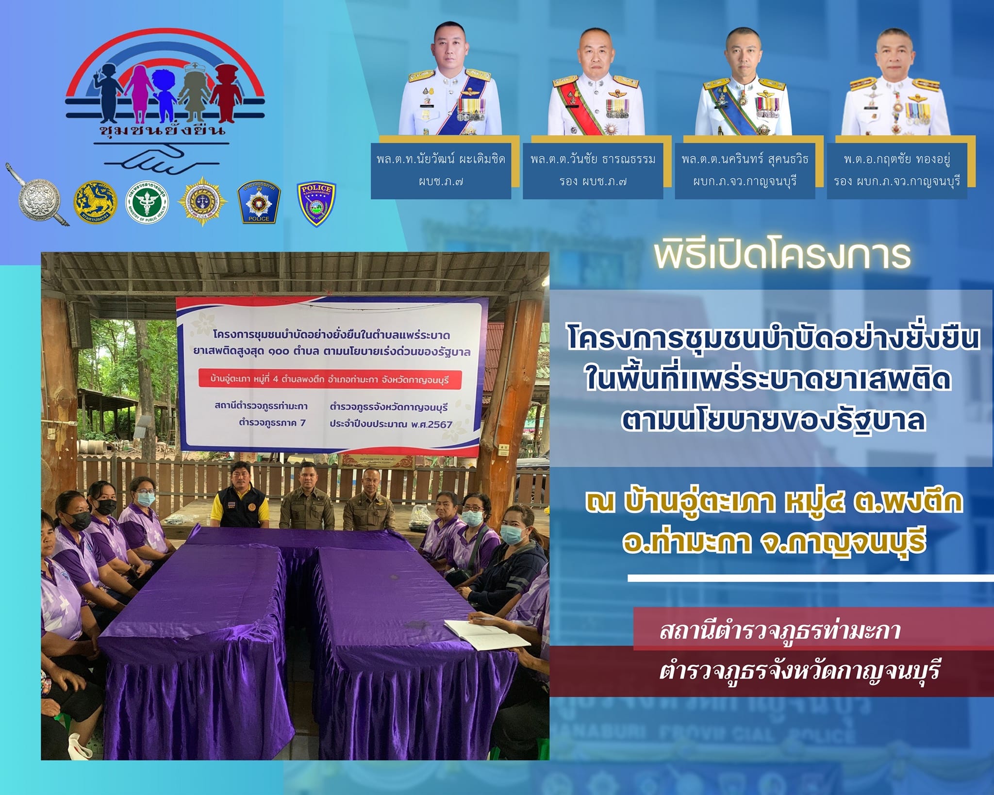 เปิดโครงการชุมชนบำบัดอย่างยั่งยืน ในพื้นที่แพร่ระบาดยาเสพติด ตามนโยบายเร่งด่วนของรัฐบาล ประจำปีงบประมาณ 2567
