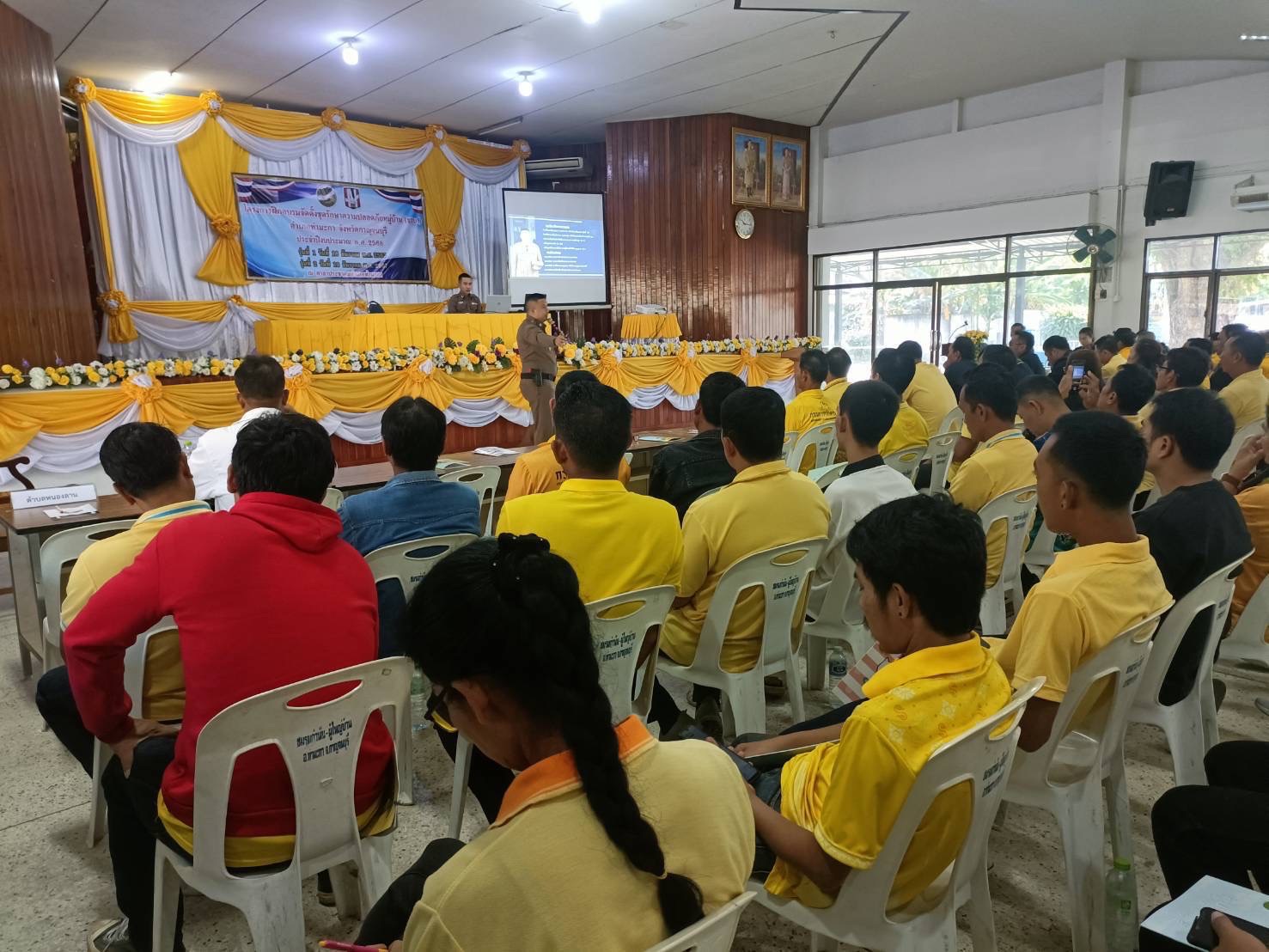 สภ.ท่ามะกา บรรยายให้ความรู้โครงการฝึกอบรมรักษาความปลอดภัยหมู่บ้าน (ชรบ.)