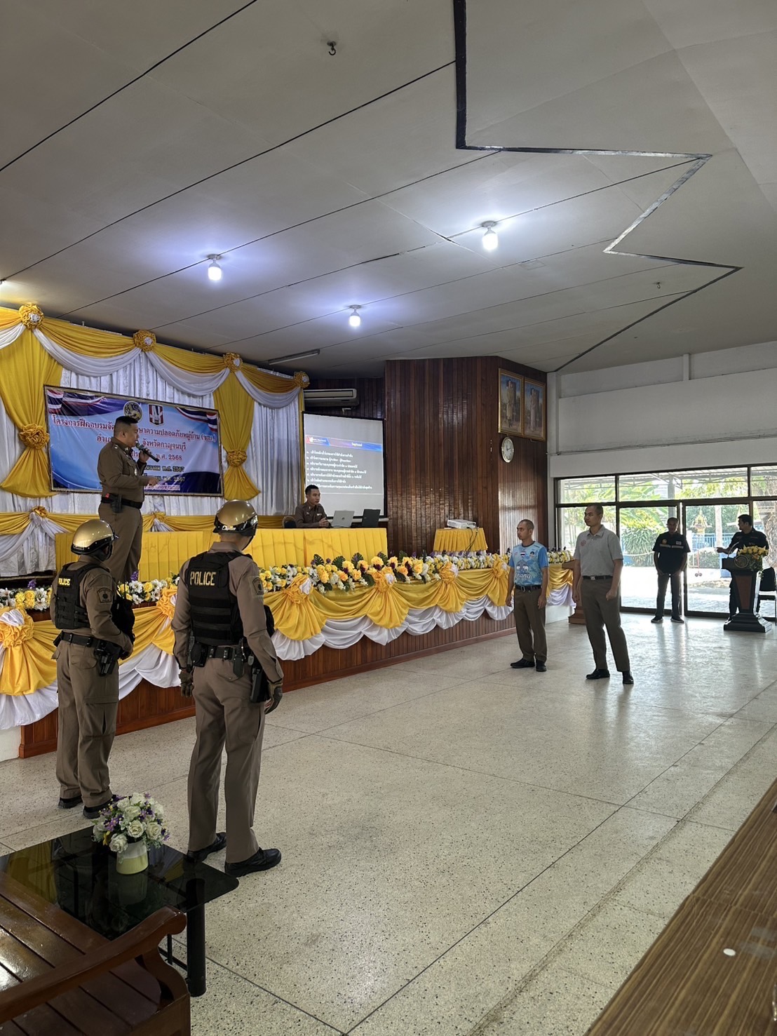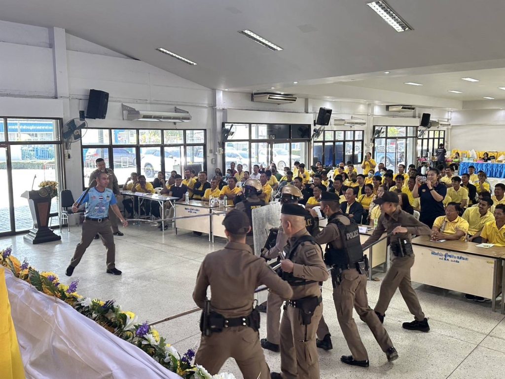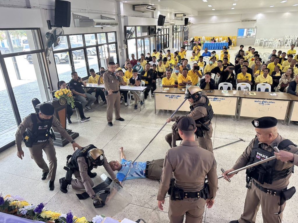 พ.ต.อ.นัฐพงศ์ เอกเผ่าพันธุ์ ผกก.สภ.ท่ามะกา มอบหมายให้ พ.ต.ท.วัชระ ทองดอนโพธิ์ สวป.สภ.ท่ามะกา ร.ต.อ.สนธิชัย อินทร์คุ้มวงศ์ รอง สวป.สภ.ท่ามะกา ร้อยเวร 20 สายตรวจรถยนต์ ,จยย.,นสต.15 ในโครงการฝึกอบรมรักษาความปลอดภัยหมู่บ้าน (ชรบ.) เป็นวิทยากร บรรยายให้ความรู้ และจำลองสถานการณ์การเข้าระงับเหตุของเจ้าหน้าที่ ระดับการใช้กำลัง การเข้าตรวจค้นจับกุม การตั้งจุดตรวจ ณ ศาลาประชาคมอำเภอท่ามะกา ต.ท่ามะกา อ.ท่ามะกา จ.กาญจนบุรี