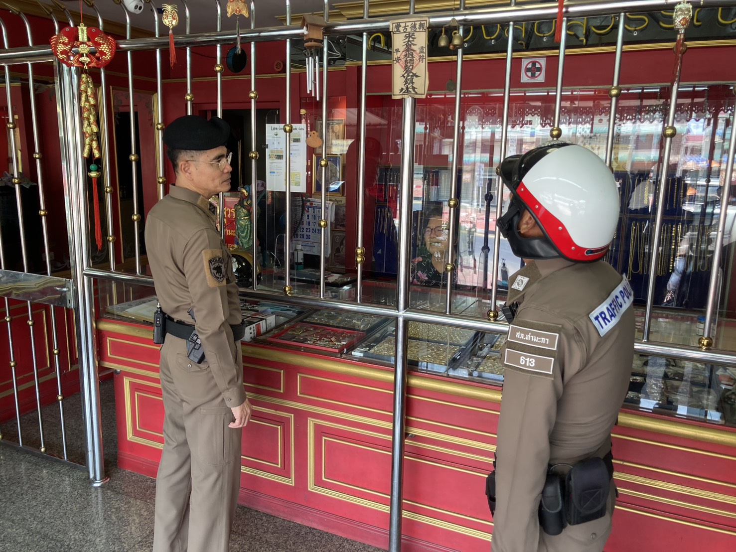 สอบถามปัญหาและประชาสัมพันธ์มาตรการการป้องกันการเกิดอาชญากรรม โดยกำชับผู้ประกอบการร้านทองให้ระมัดระวังมากขึ้นเนื่องจากราคาทองในช่วงนี้พุ่งสูงขึ้น