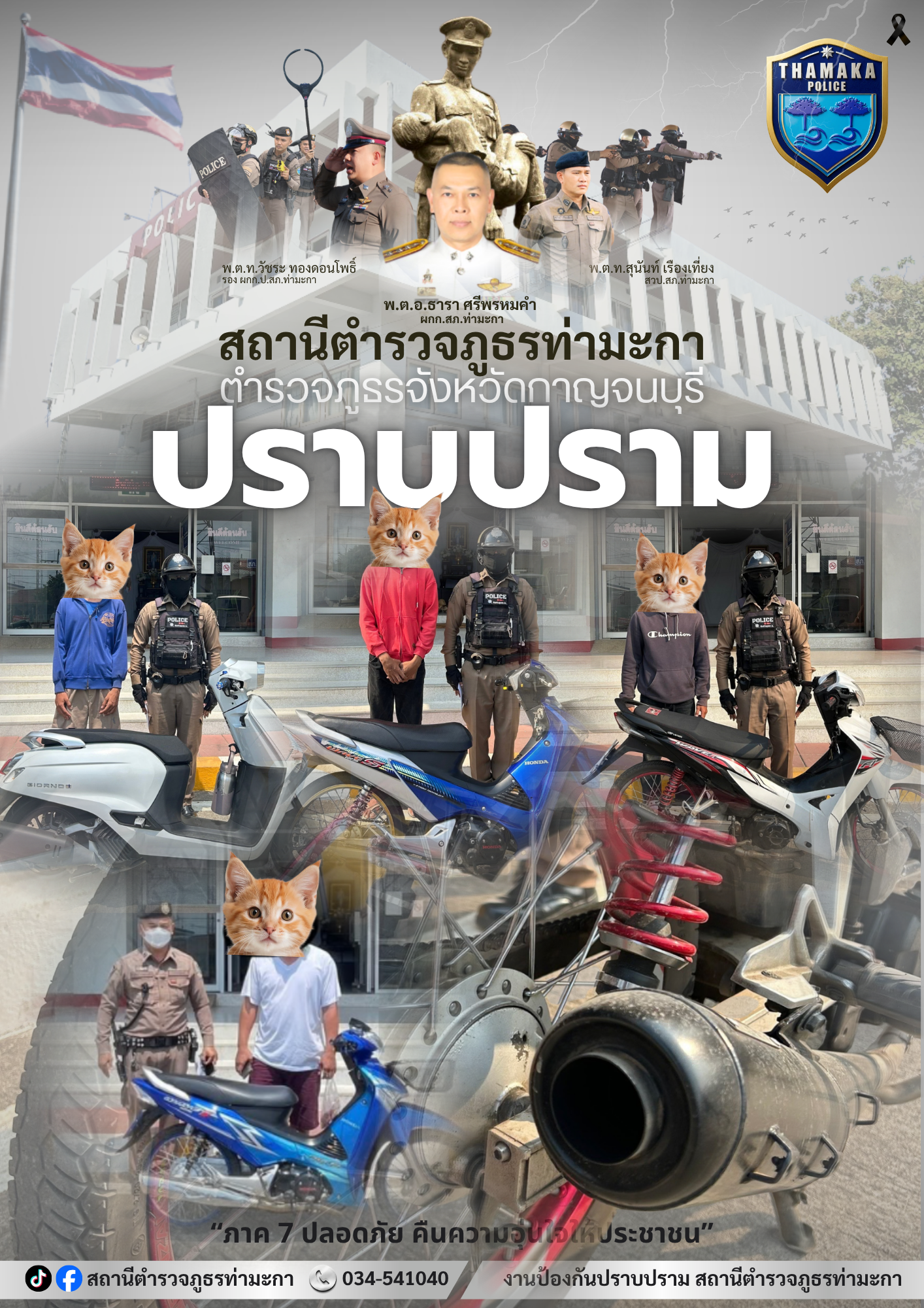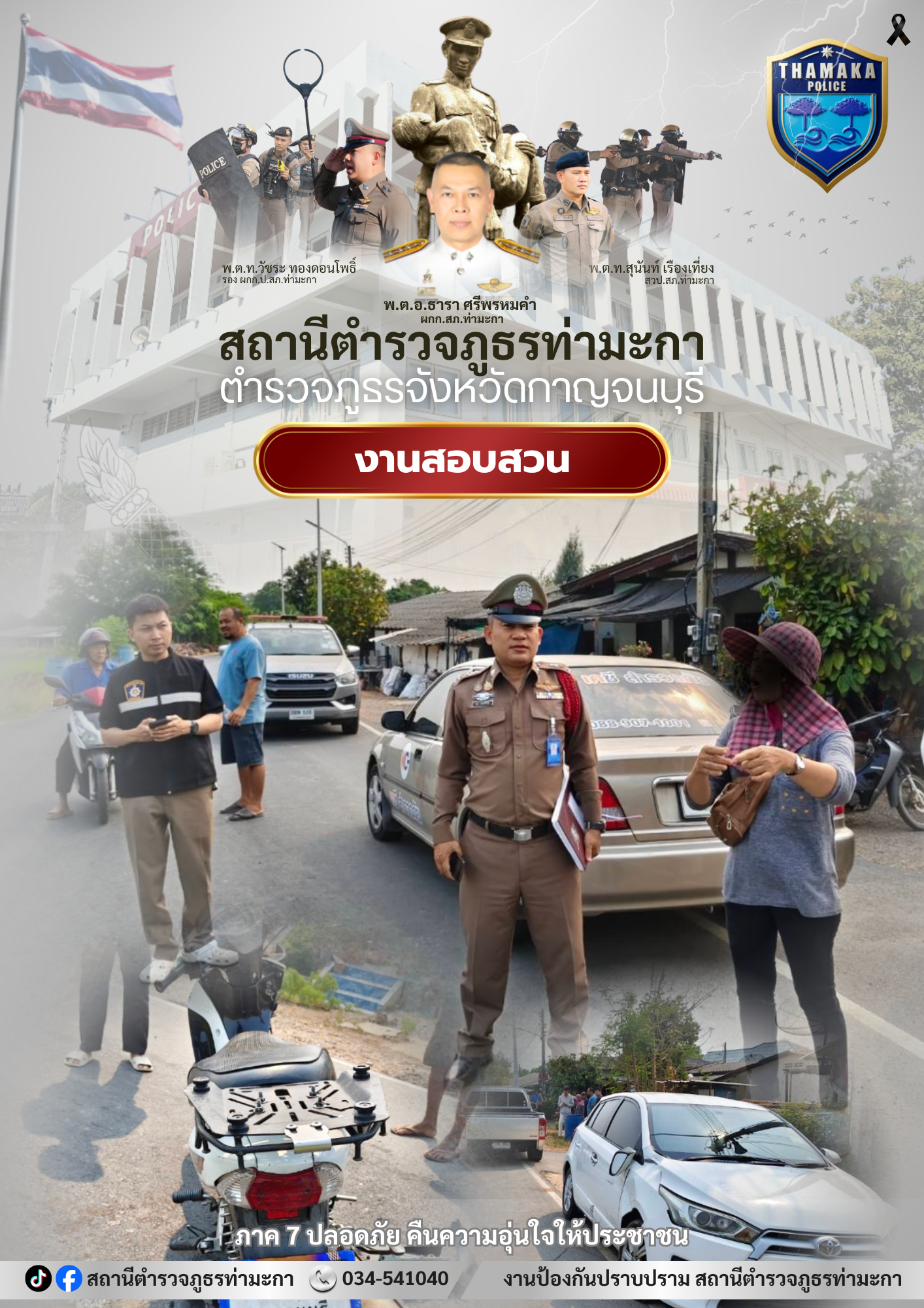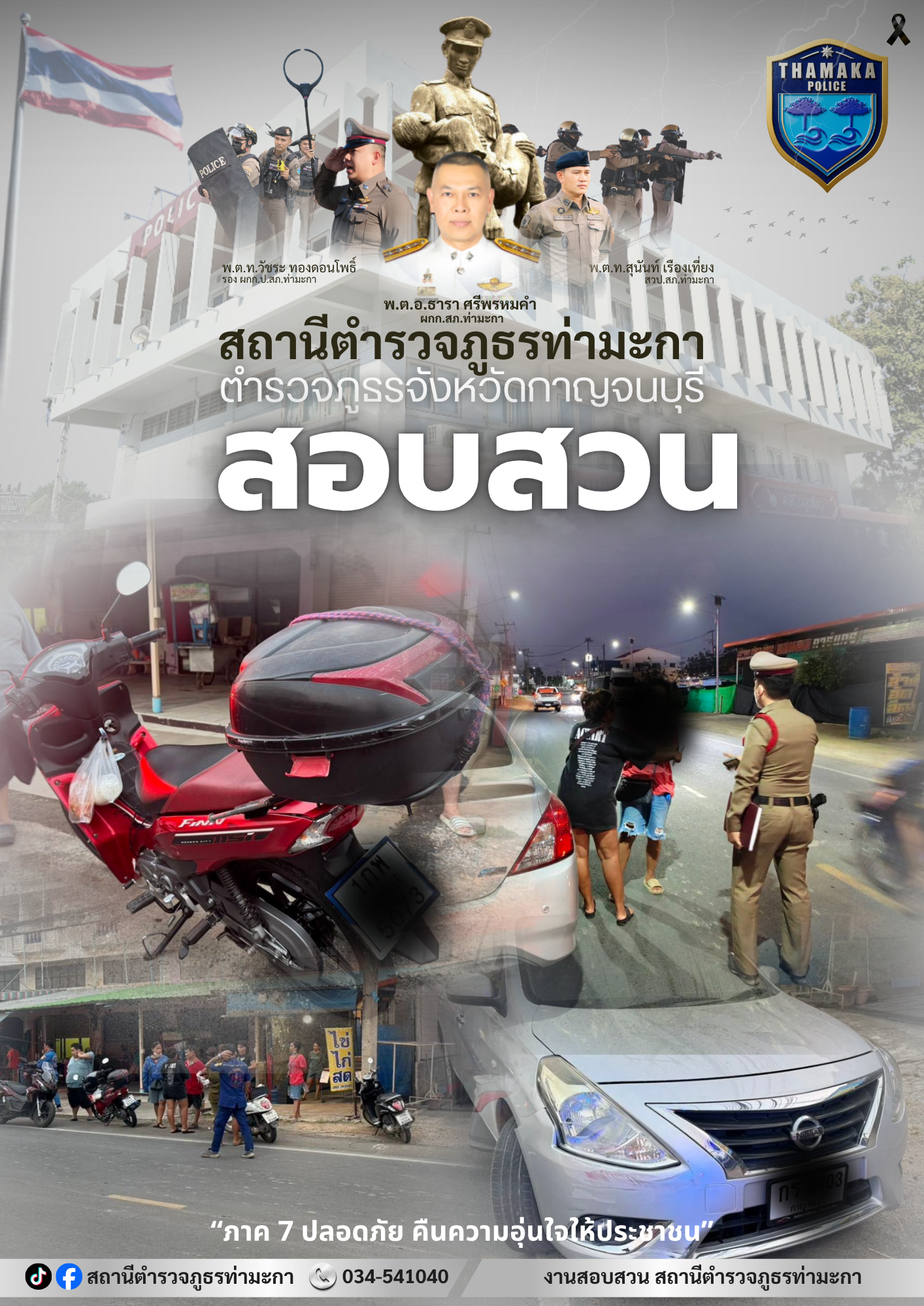 (หน้า สภ.ท่ามะกา) ขาเข้า กทม. หมู่ 2 ต.ท่ามะกา อ.ท่ามะกา จ.กาญจนบุรี เพื่อกวดขันวินัยจราจร ป้องกันอาชญากรรมและมาตรการป้องกันการ