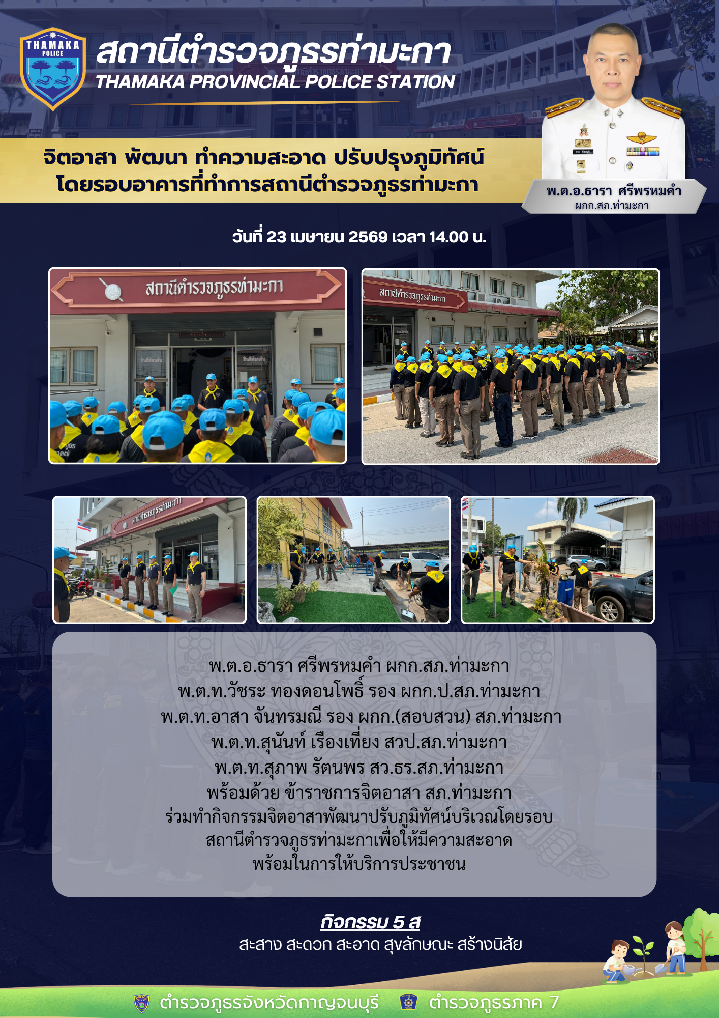 พร้อมข้าราชการตำรวจ สภ.ท่ามะกา ร่วมกิจกรรมจิตอาสาพัฒนา ทำความสะอาด ปรับปรุงภูมิทัศน์