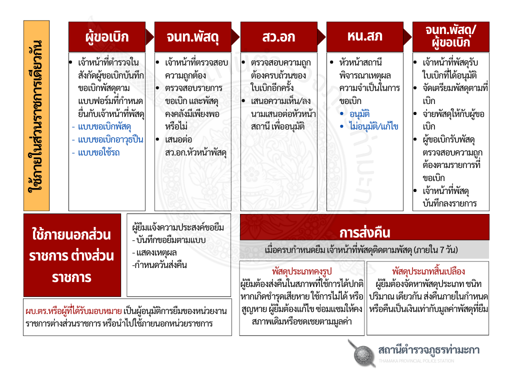 4.กำหนดแนวทางการยืมหรือเบิกจ่ายทรัพย์สินของทางราชการหรือของบริจาคไปใช้ปฏิบัติงานอย่างชัดเจน